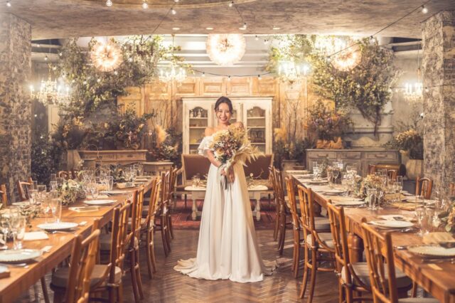 バーカウンターを備えた大人な会場や、ナチュラルな空間で、リラックスしたお披露目会が叶います。挙式映像の上映や、ビュッフェスタイルでの歓談など、自由度の高い演出で笑顔溢れる「友婚」を楽しみませんか。